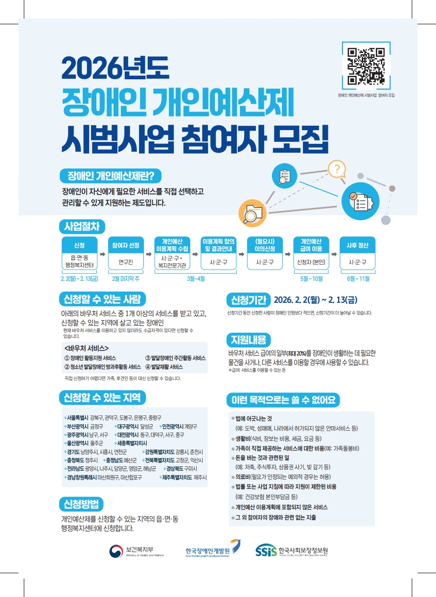 [홍보안내] 2026년 장애인개인예산제 시범사업 참여자 모집 (전남동부권: 광양시 실시)