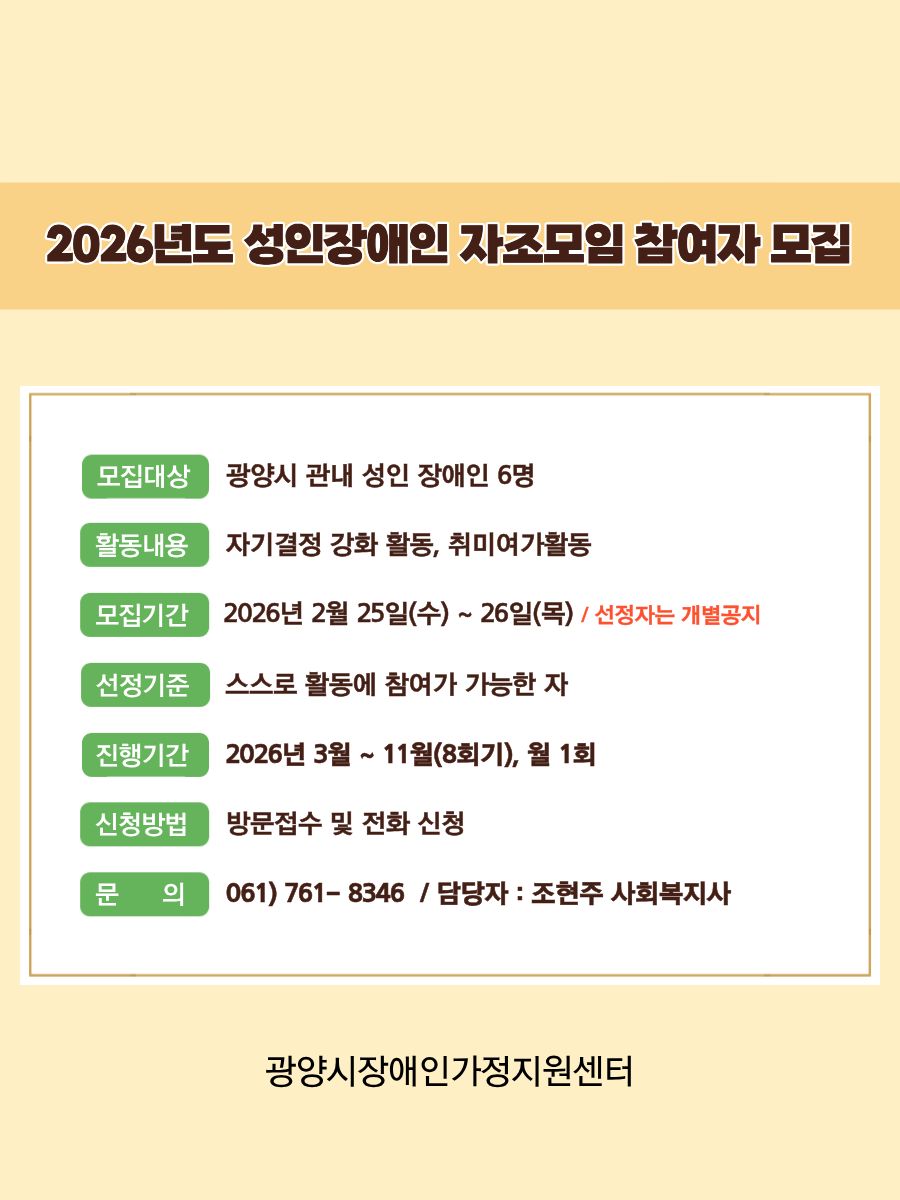 2026년 성인장애인 자조모임 프로그램 참여자 모집