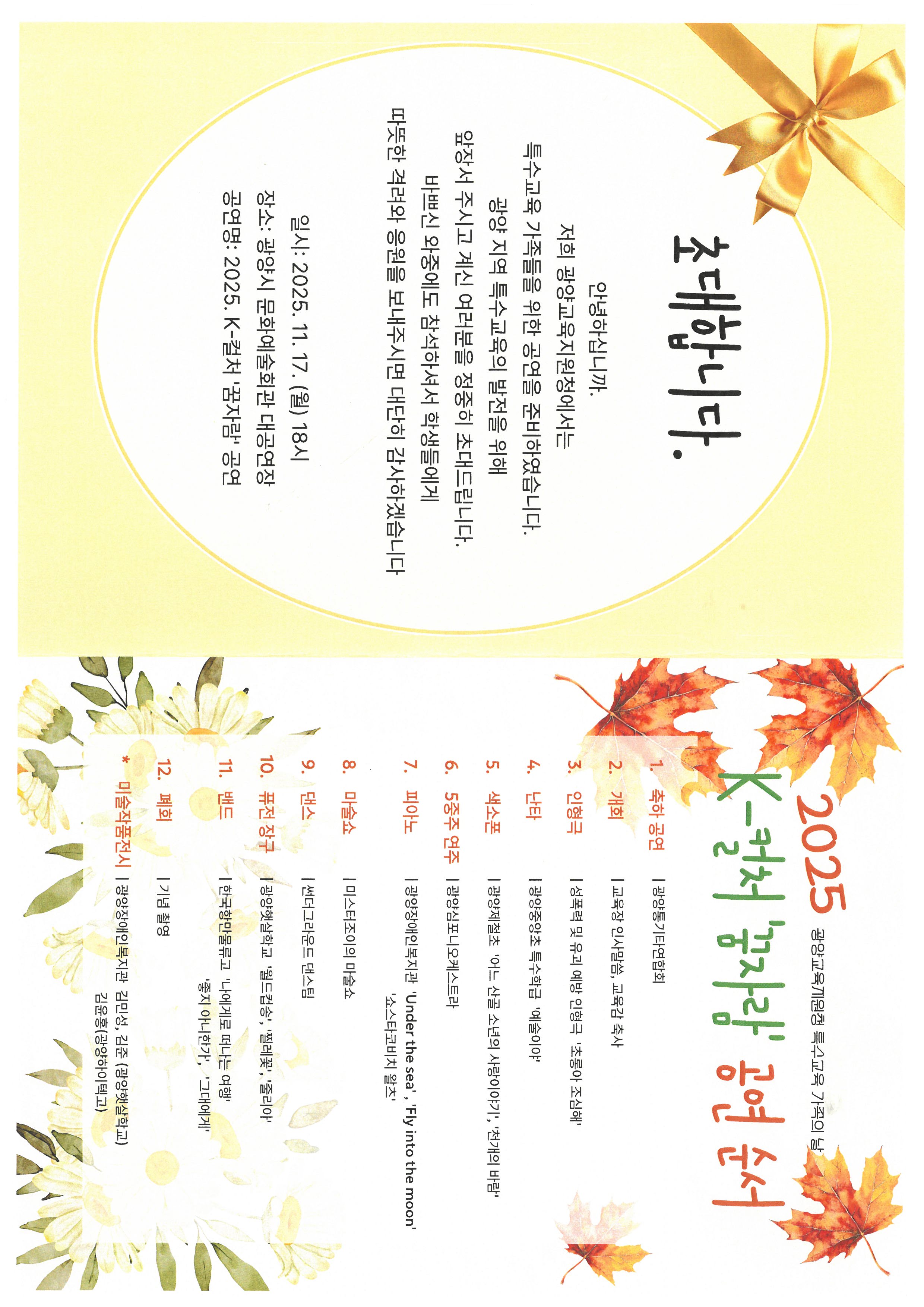 [홍보안내] 광양교육지원청 특수교육 가족의날 K-컬처 '꿈자람' 공연 안내