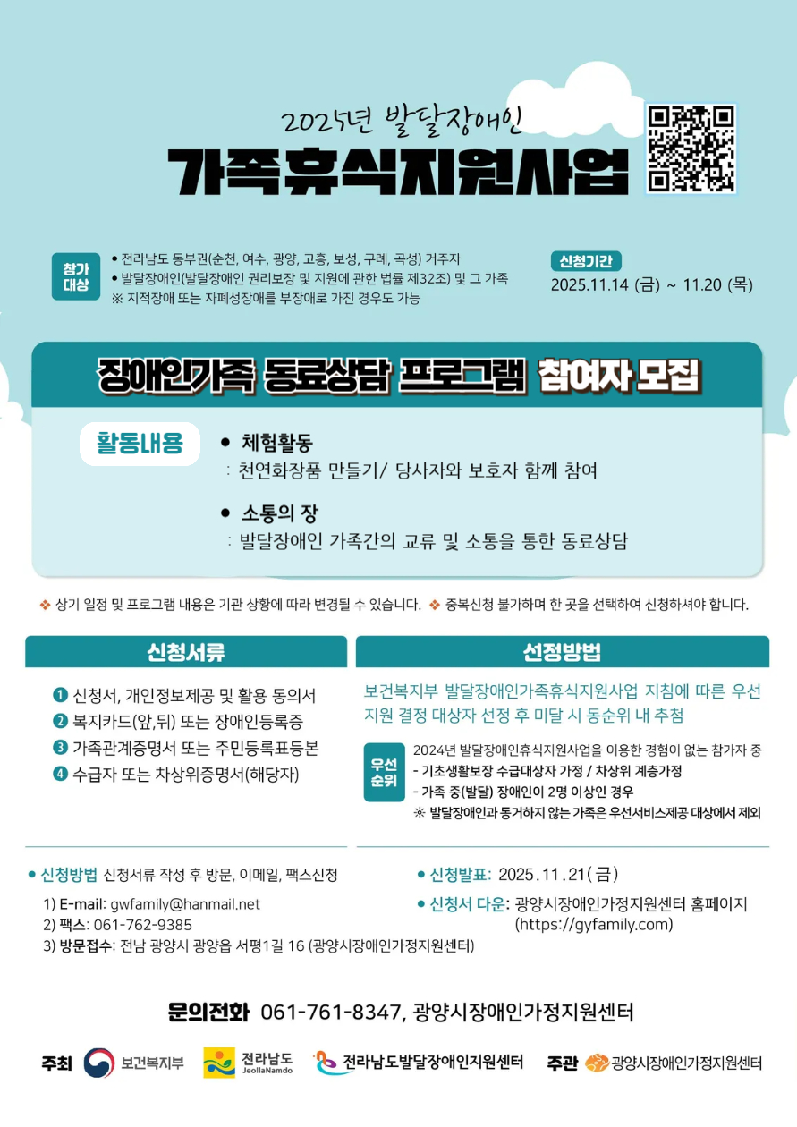 2025년 발달장애인가족휴식지원사업 동료상담캠프 프로그램 참여자 모집