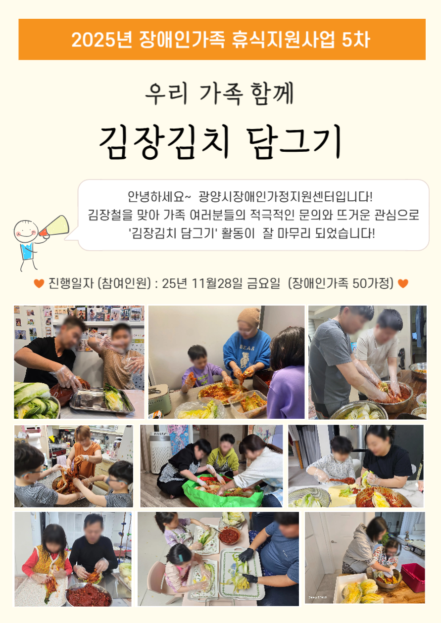 2025년 가족휴식지원사업 5차 '김장김치 담그기' 활동사진